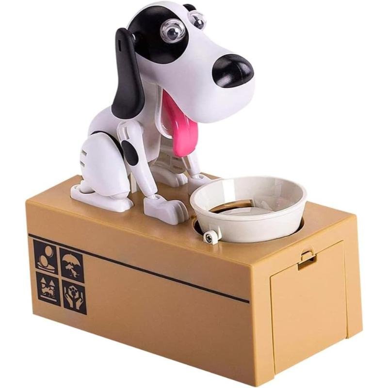 Una opción divertida para los niños. Esta hucha tiene un diseño de un perro hambriento que «come» las monedas cuando las depositas.