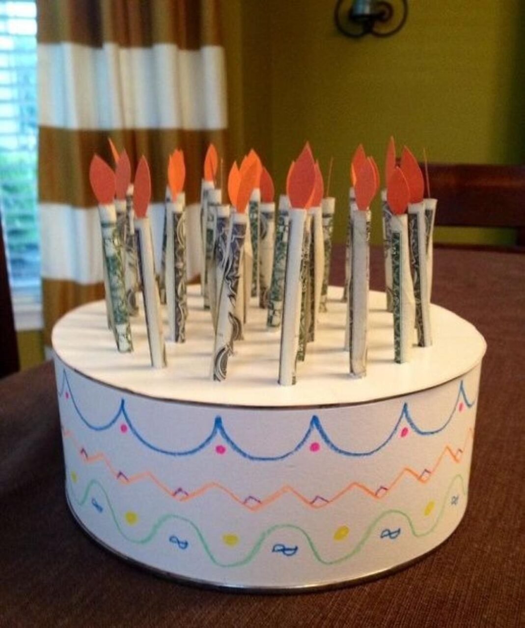 - Pastel falso: Construye un “pastel” con cartón y cubre las capas con billetes.